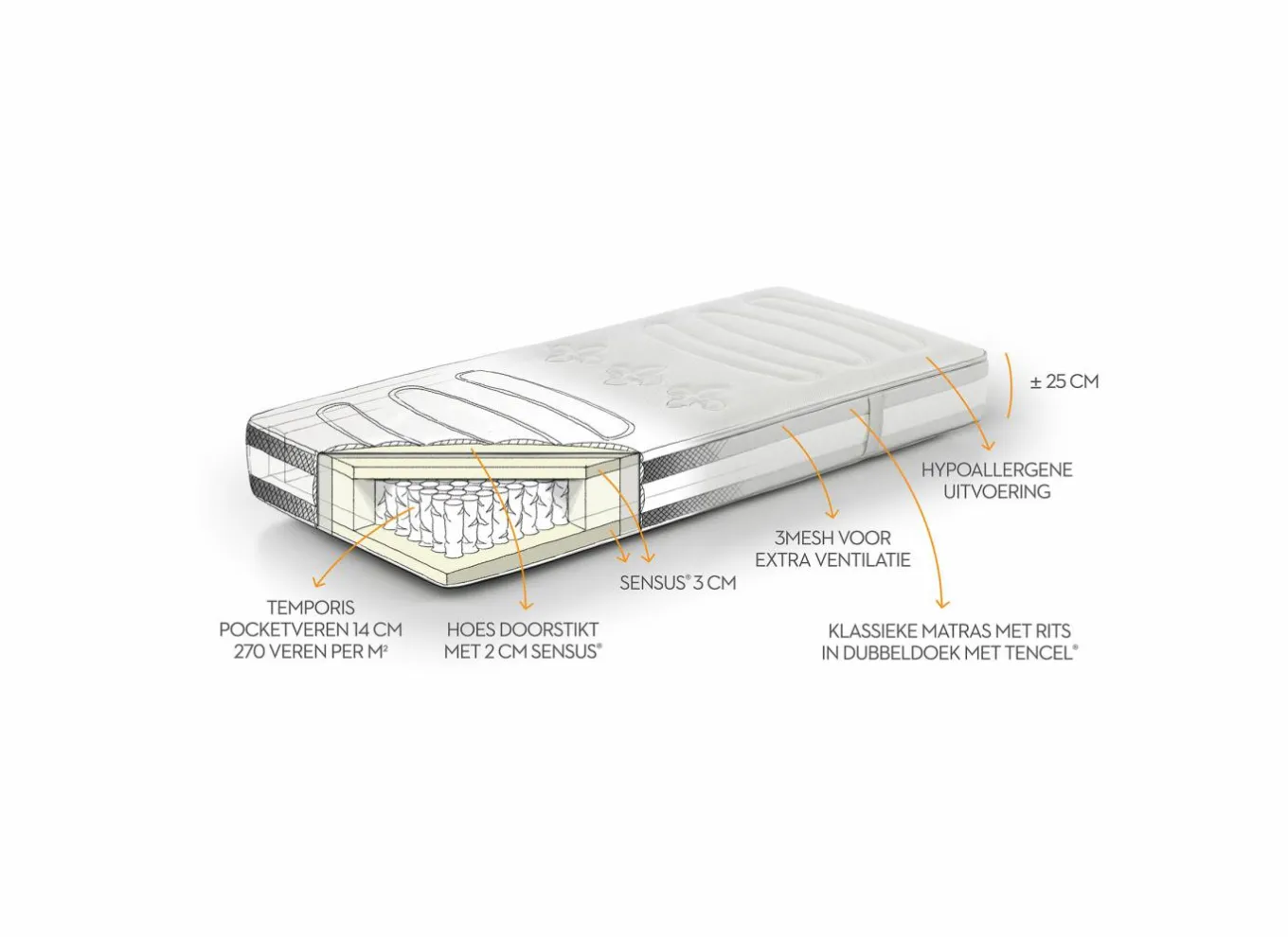 | Matrasdikte | 25 cm |