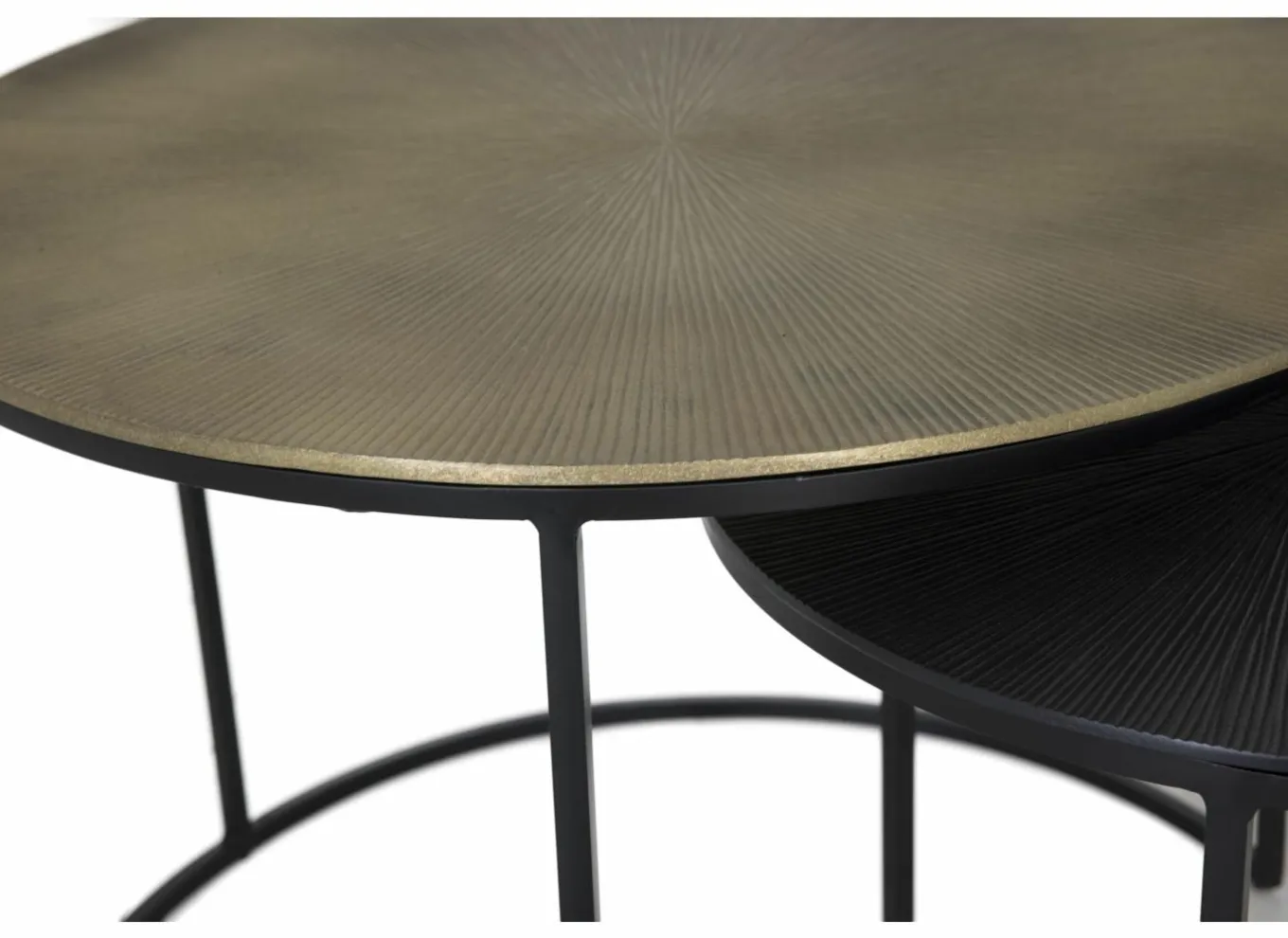 De tafel is gemaakt van metaal dat verschillende bewerkingsprocessen ondergaat om de gewenste kleur en textuur aan het product te geven. De bovenste laag is voorzien van een laklaag die de afwerking beschermt tegen dagelijkse schade of reacties op atmosferische omstandigheden.