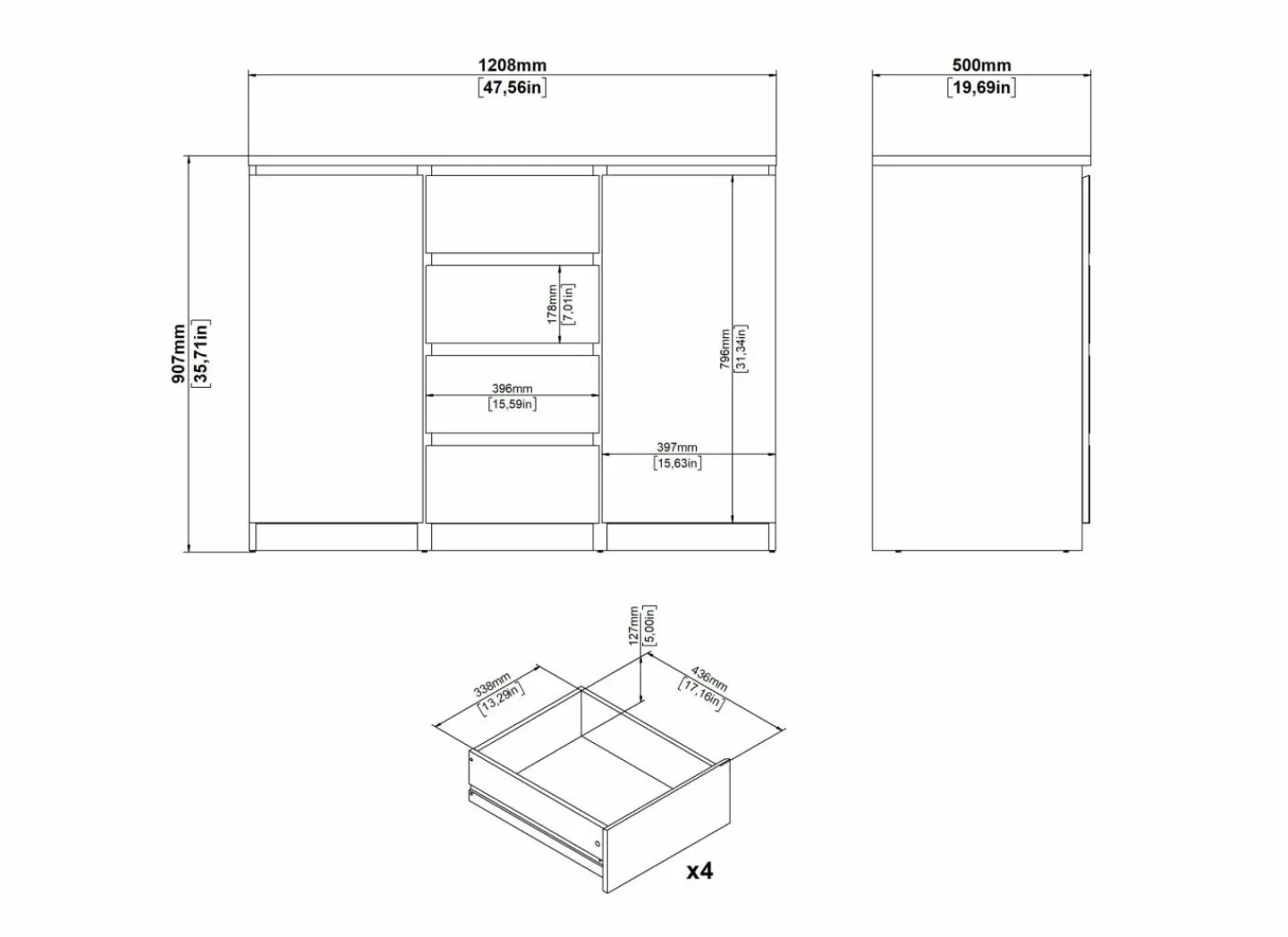 | Materiaal | Meubelplaat afgewerkt met melamine |