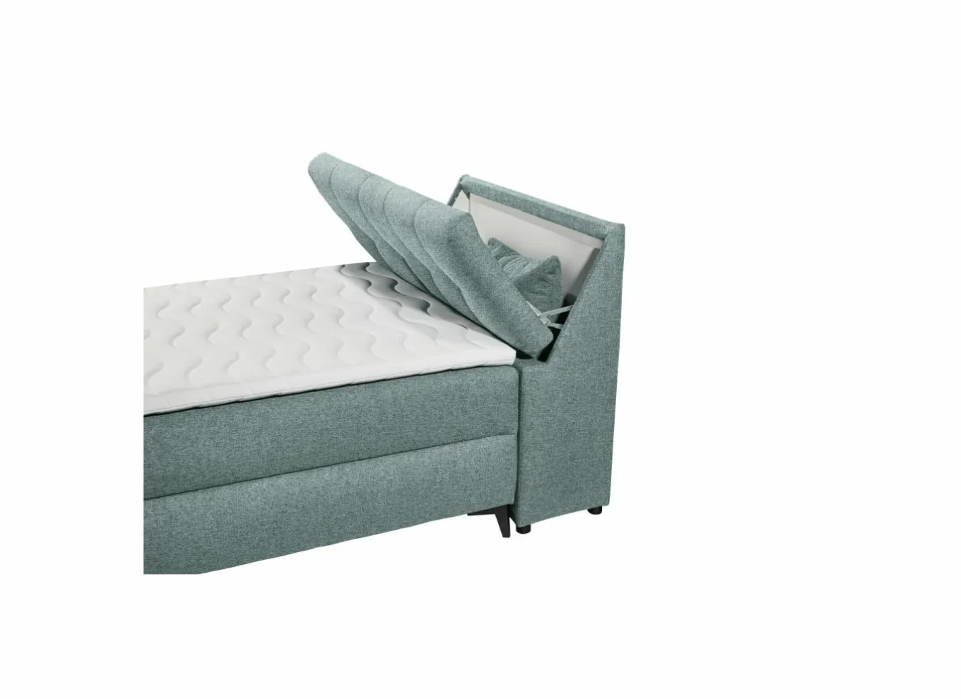 De bedbox heeft 2 opbergruimtes: 1 aan de achterkant onder de matras en 1 aan het hoofdeinde die opengeklapt kunnen worden.