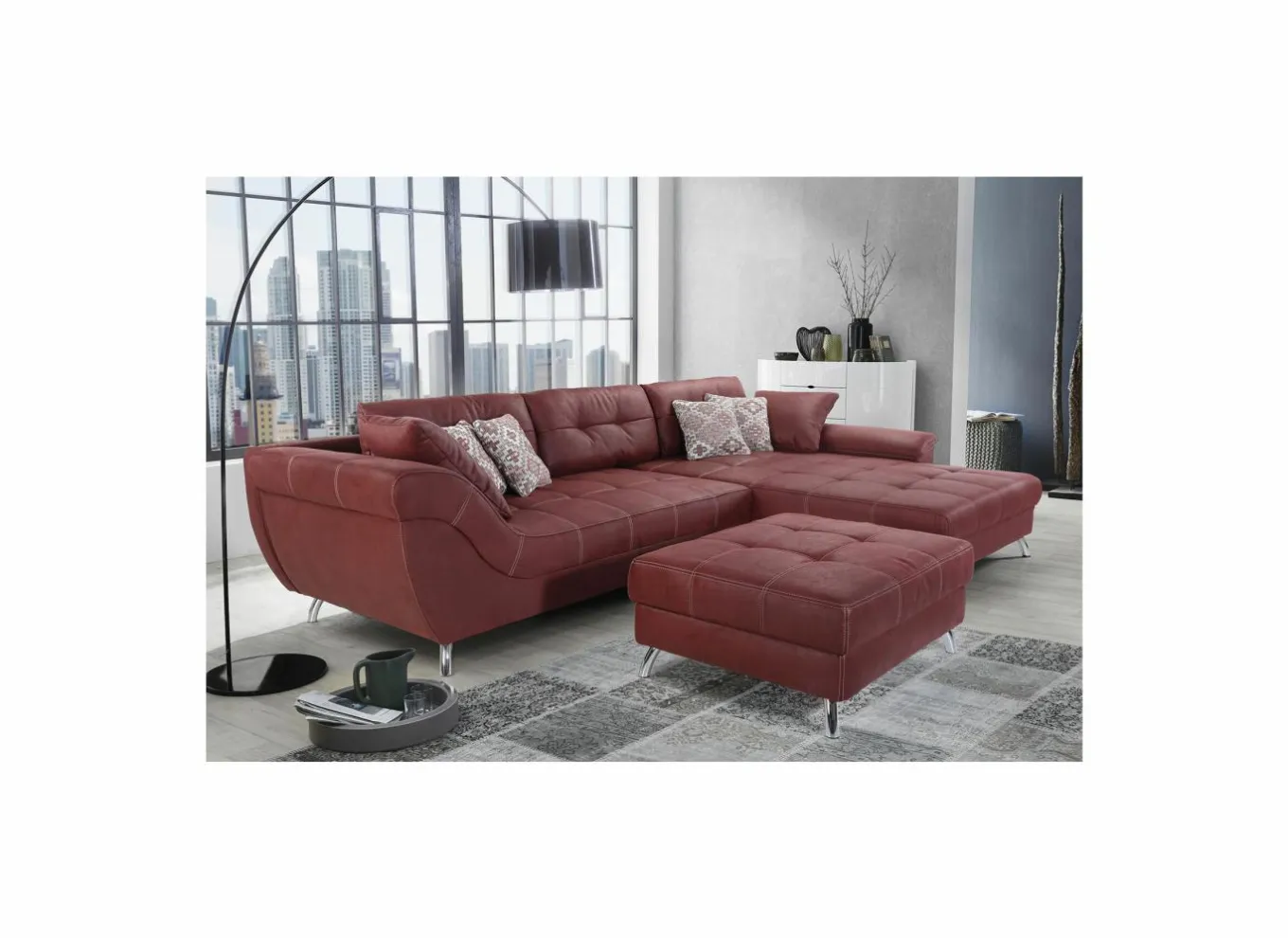 | Opstelling hoeksalon | Longchair rechts, In spiegelbeeld monteerbaar |