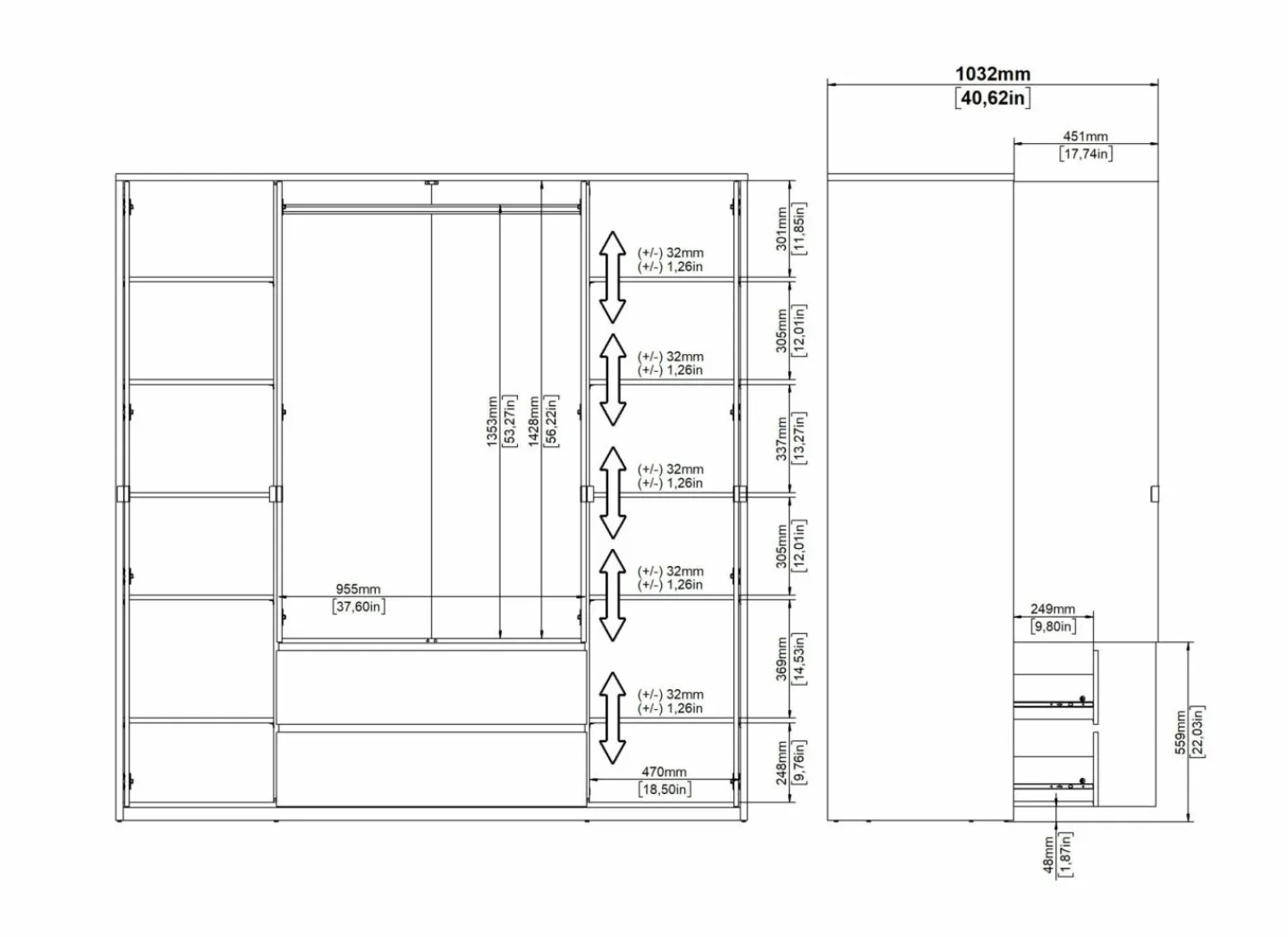 | Materiaal | Meubelplaat afgewerkt met melamine |