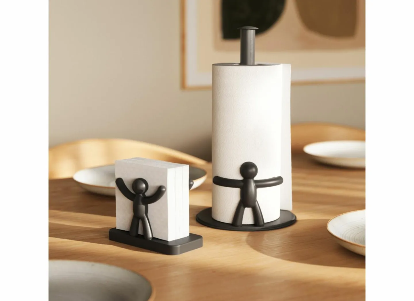 Umbra Keukenrolhouders|Keukenrolhouder Bellewood 17,1×17,1×32,3cm – metaal & hout – wit & naturel