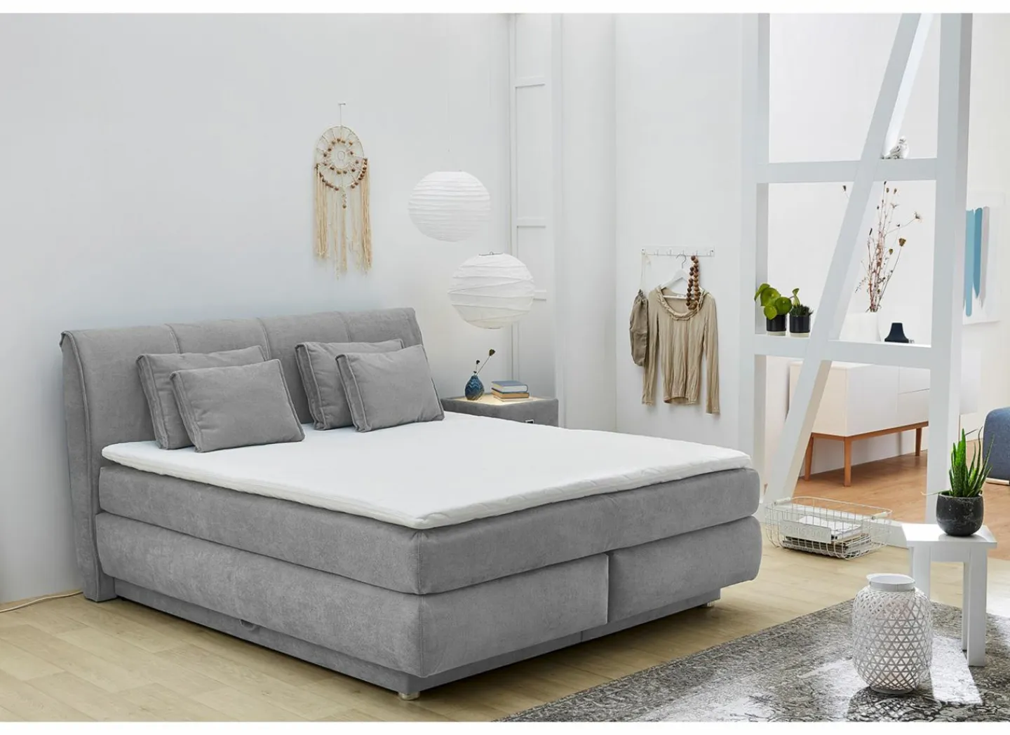 Boxspring Carla Mix 160x200cm – stof – grijs met opbergruimte- Boxsprings