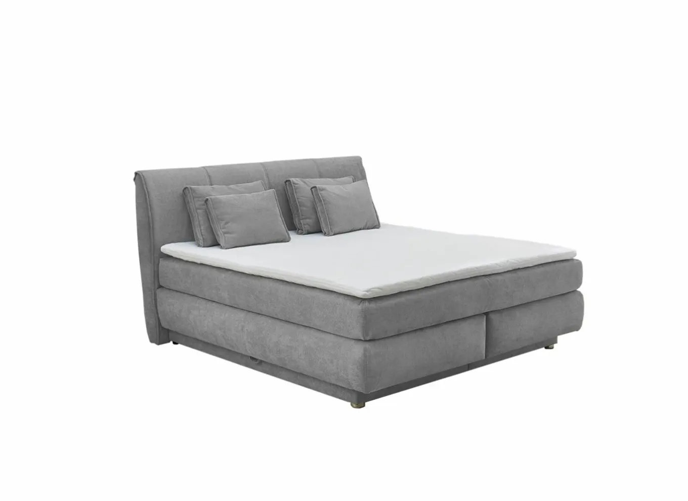 Deze grijze boxspring heeft een ligoppervlakte van 180x200cm. In één hoes zitten twee standaardkernen.