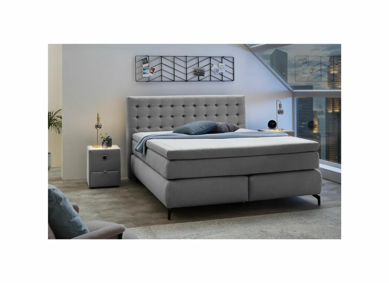 Deze grijze boxspring heeft een ligoppervlakte van 180x200cm.