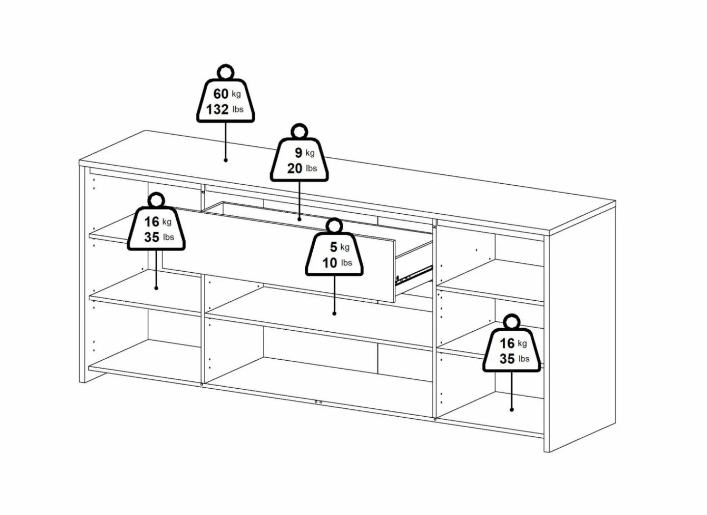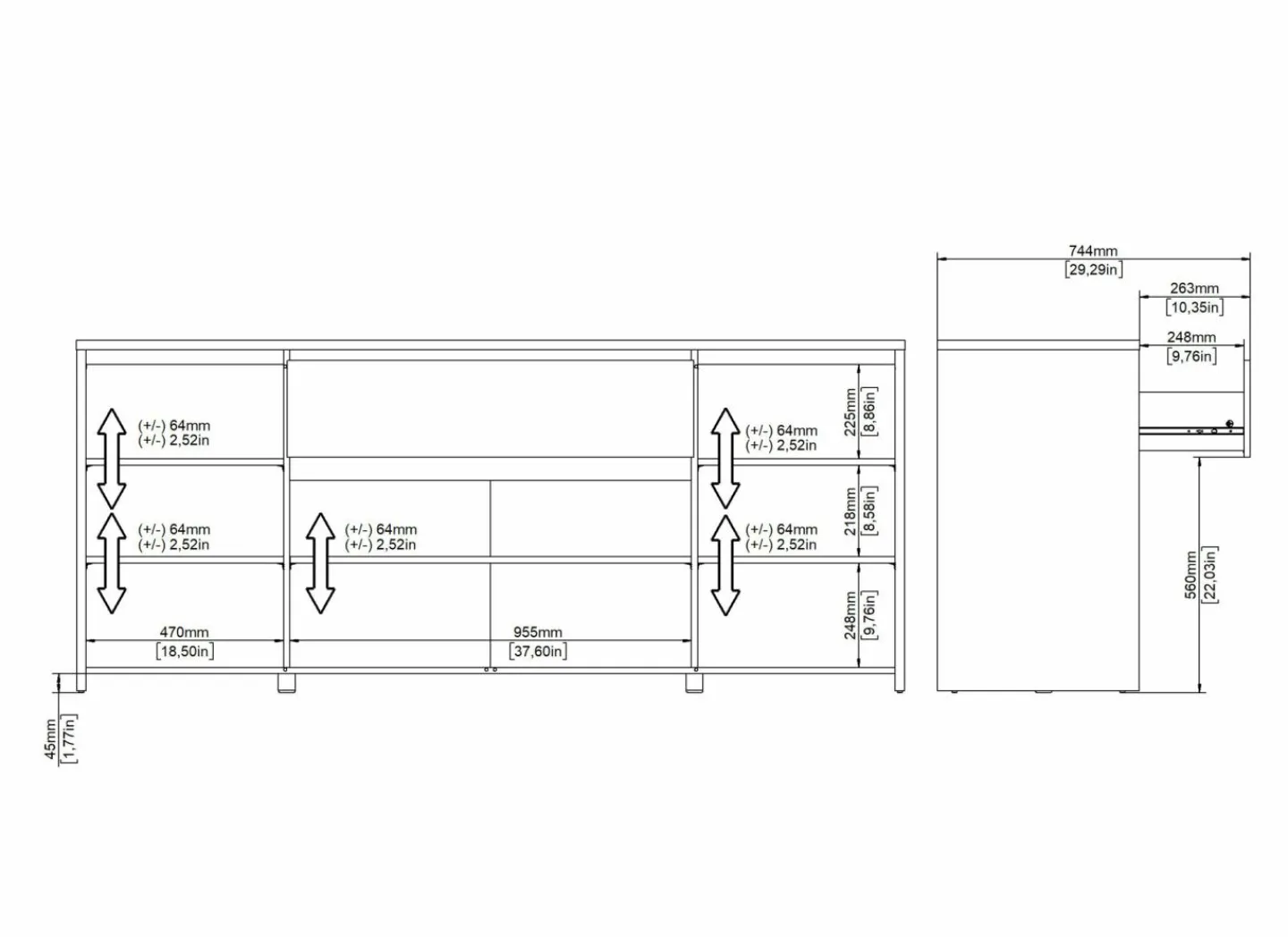| Materiaal | Meubelplaat afgewerkt met melamine |