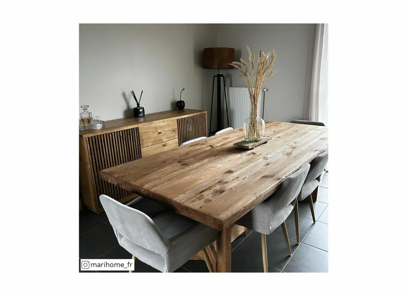 De tafel is vervaardigd uit massief gerecycled dennenhout, waardoor elk exemplaar uniek is en voorzien van een authentiek karakter. De natuurlijke bruine afwerking benadrukt de stoere uitstraling van het hout, terwijl de stevige houten poten zorgen voor stabiliteit en duurzaamheid.
