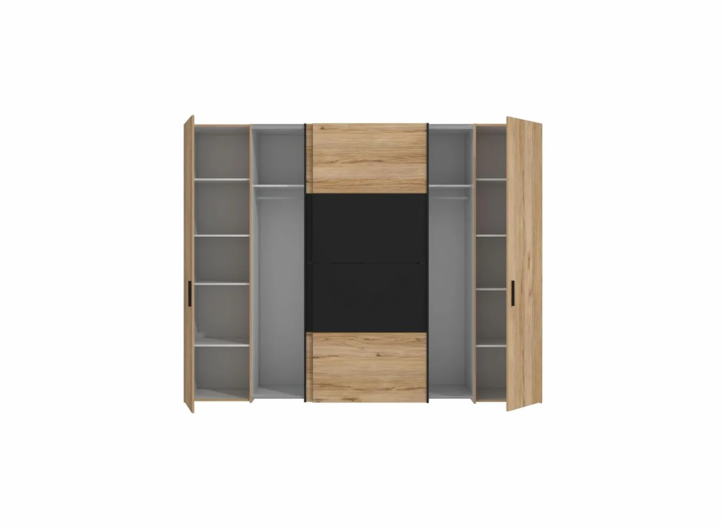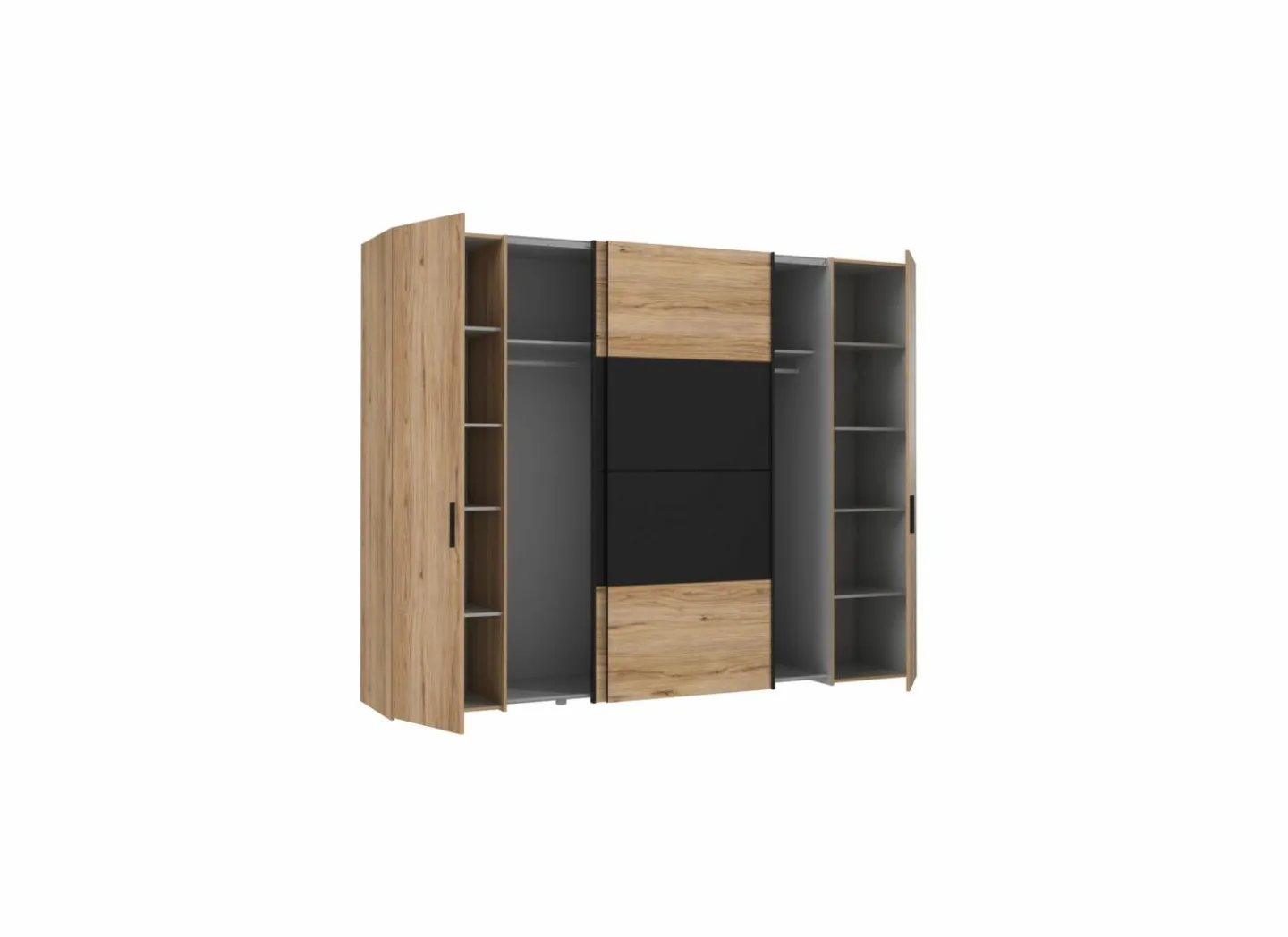 Achter elke schuifdeur is 1 legplank en 1 hangbaar inbegrepen.
