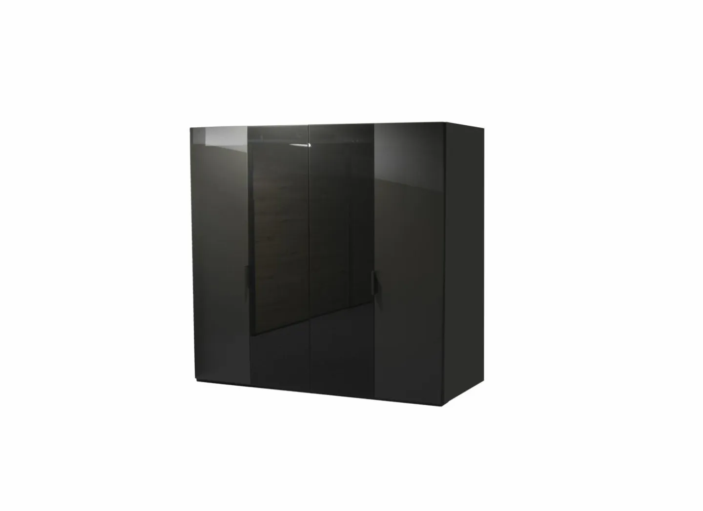 Strakke draaideurkast in grafiet met een stijlvolle afwerking van basaltkleurig glas. De kast is 222 cm hoog en bestaat uit een combinatie van volle en glazen deuren, wat zorgt voor een luxueuze en moderne uitstraling.