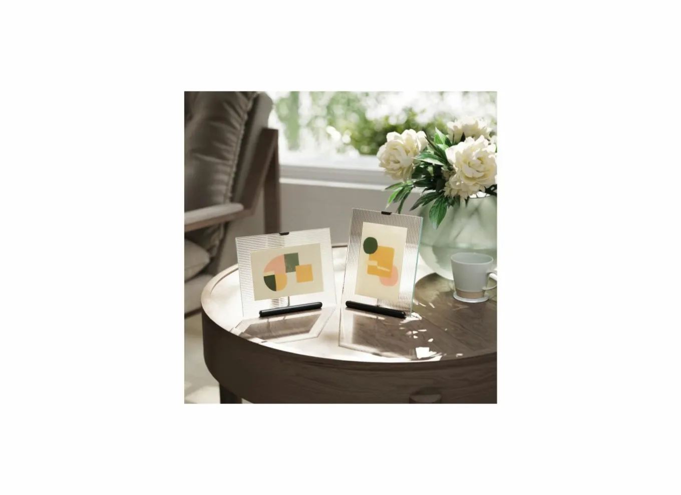 Toon kunstwerken of foto’s verticaal of horizontaal door het glas te draaien.